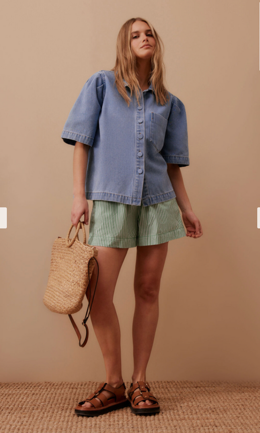 Dylan Pleat Sleeve Denim Shirt - Fresh Indigo
