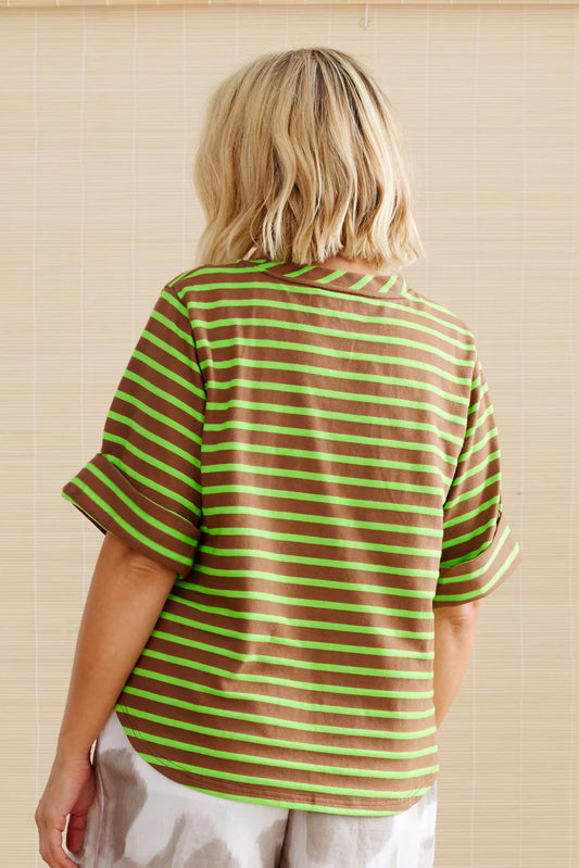 Boxy Pocket Tee Powder Zesty Green Stripe