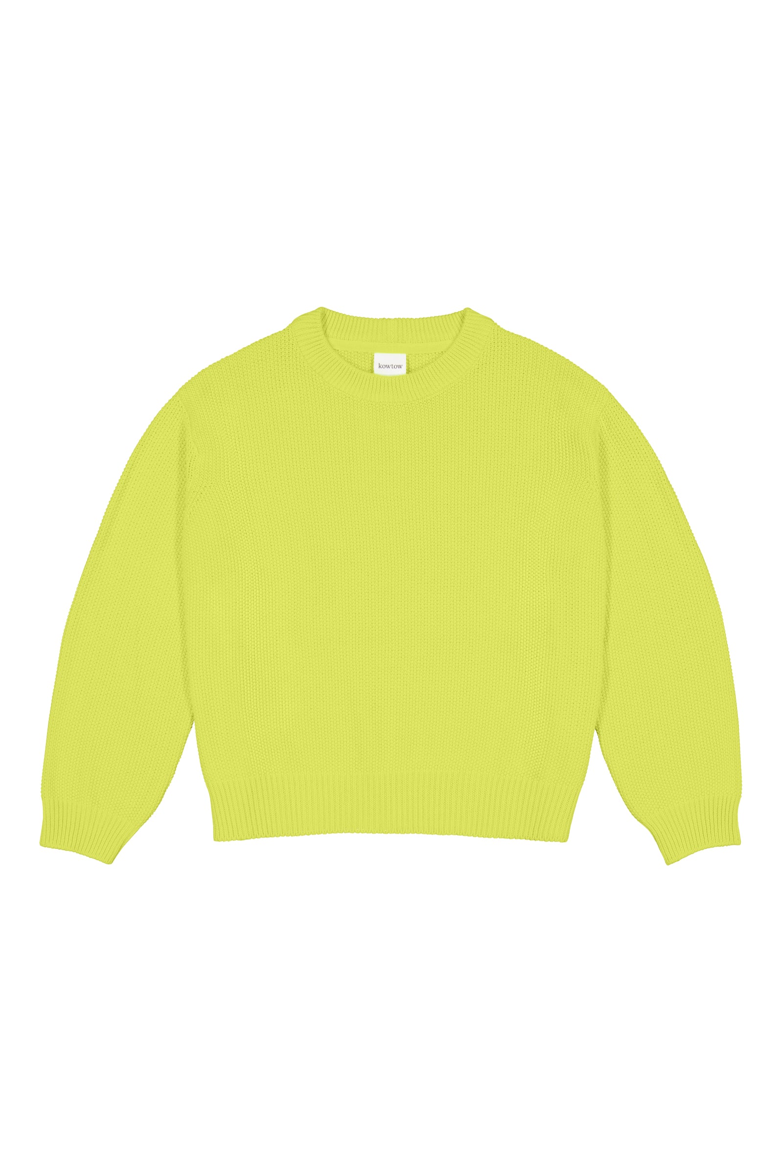 A relaxed take on our Escape Crew, the Hero crew is an easy-wear style in a bold Fluro Yellow colourway. Designed for an oversized fit, it features a crew neckline and is knitted in a soft organic cotton seed stitch. Finished with a narrow rib at the neckline, hem and cuffs for a refined touch.