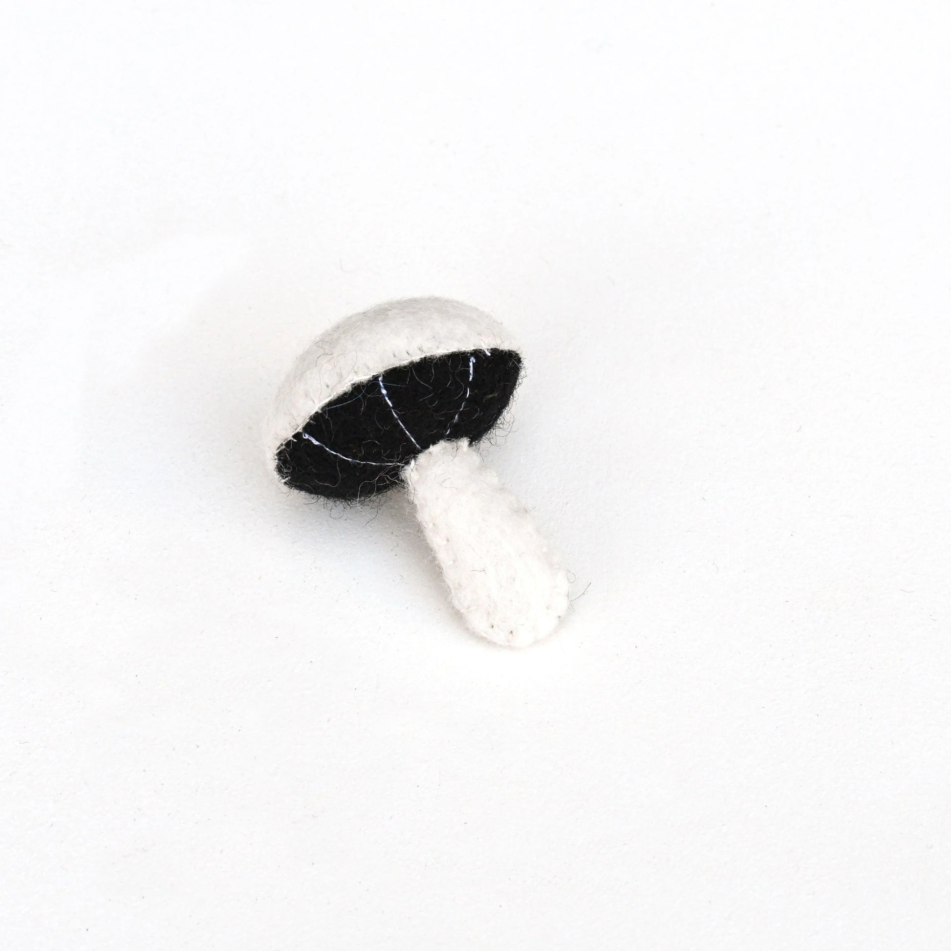 This felt white button mushroom has been meticulously needle-felted with wool and has been dyed with non-toxic colours, making it safe for young children.