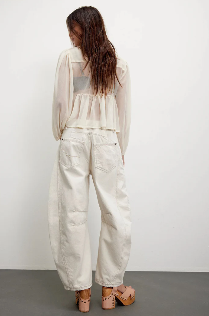 Fit: Mid-rise, slouchy, relaxed fit, wide-legs, ankle-length; this style runs slightly large so we recommend sizing down one size