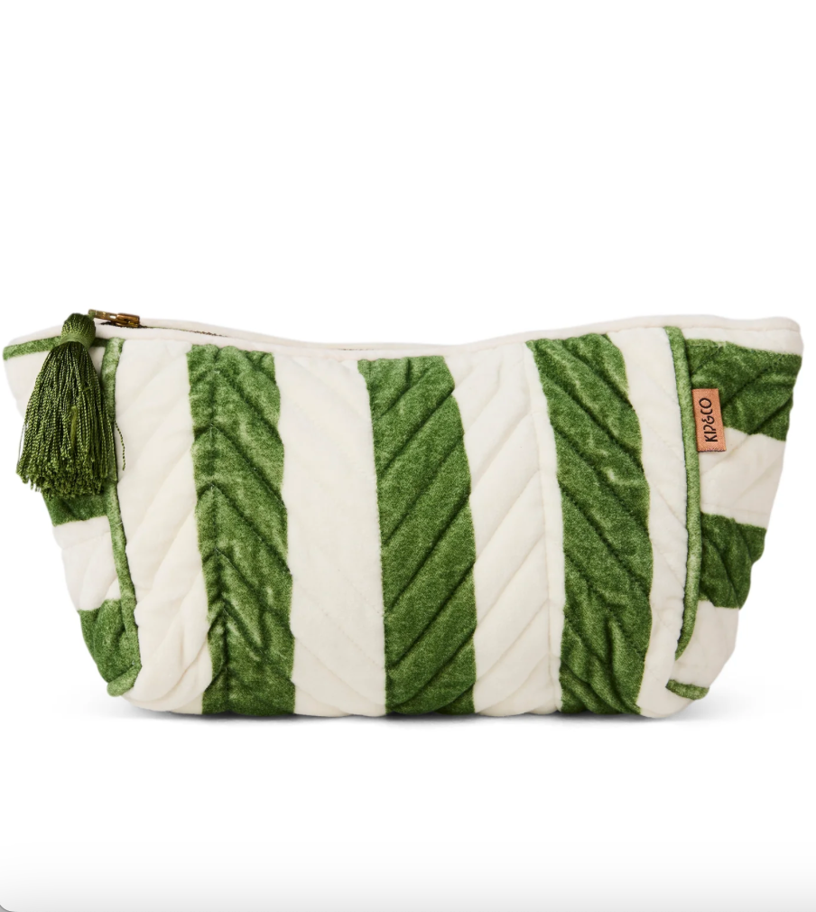 Moss Stripe Velvet Toiletry Bag