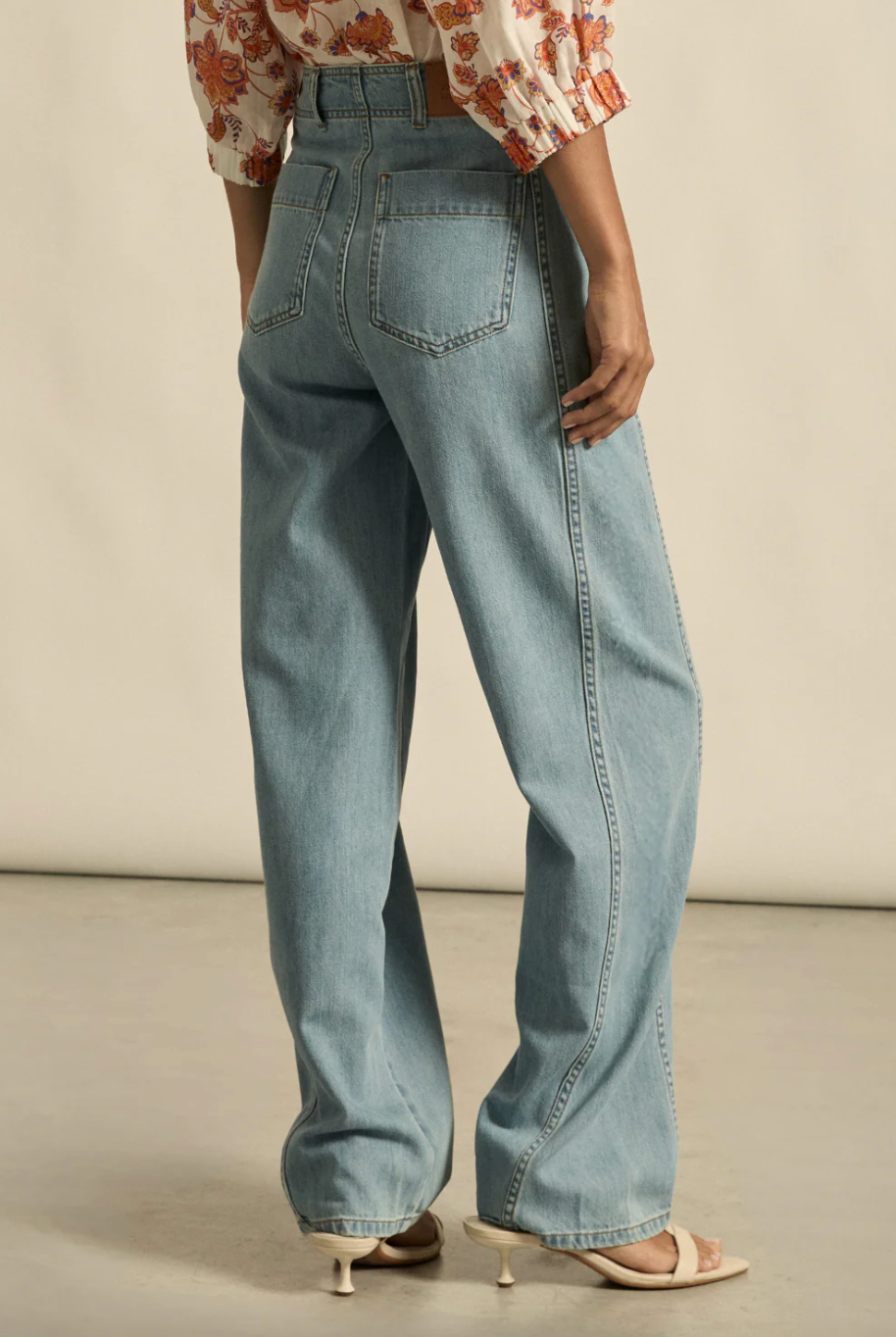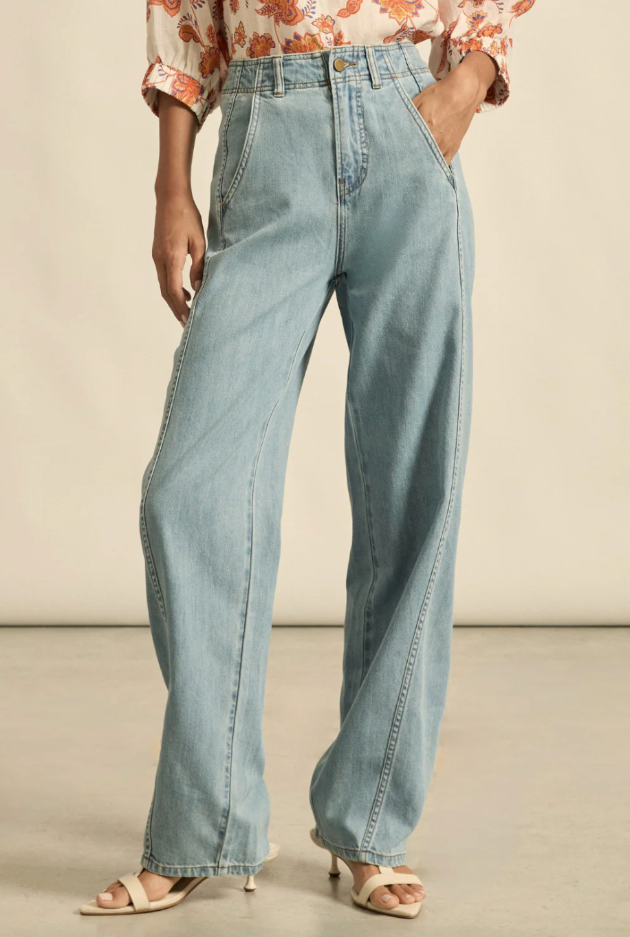 - high-waisted, barrel-leg silhouette for a timeless fit