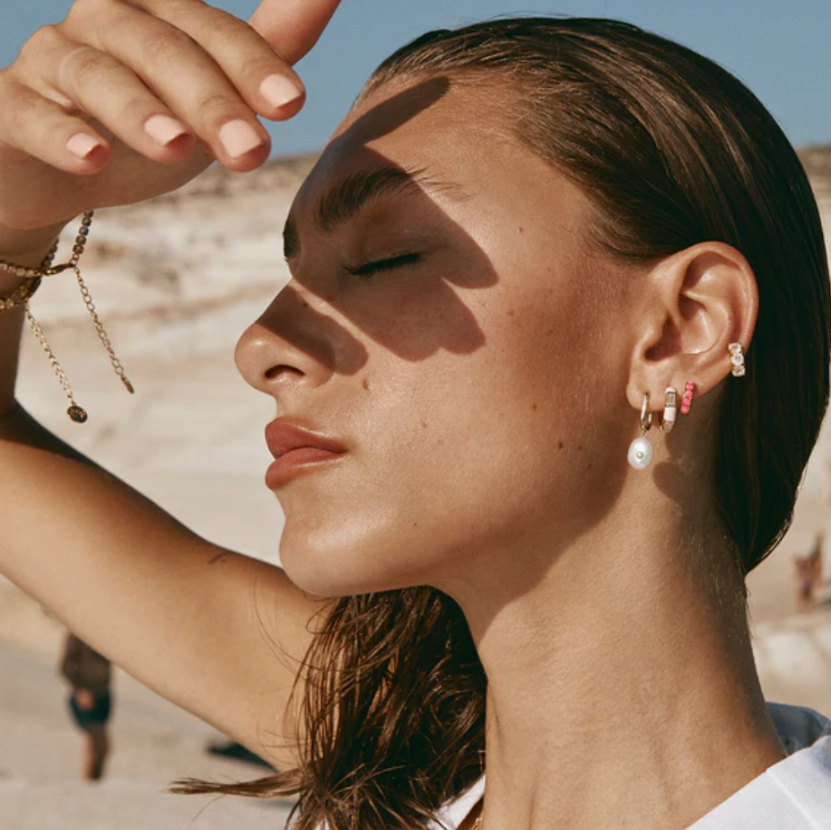 - Light pink enamel with white rectangular Swarovski crystals 2 x 4 mm